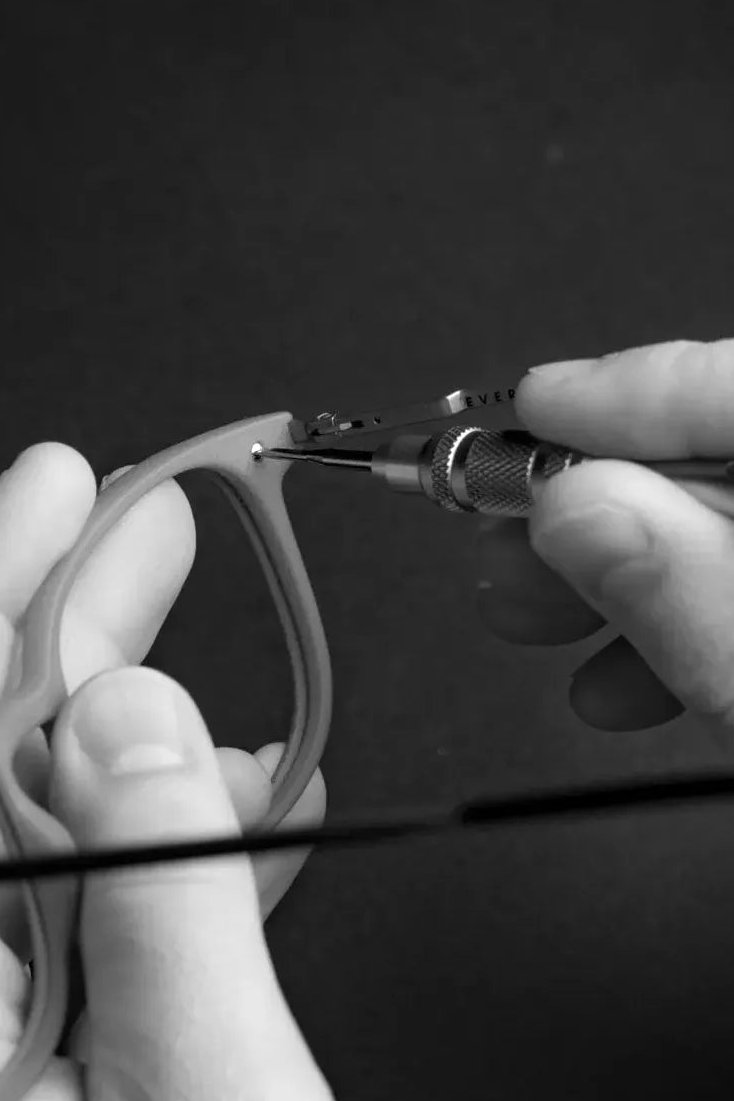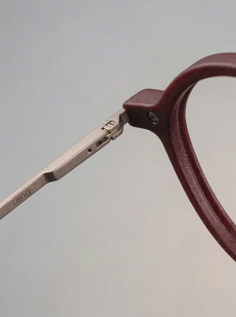 Hier komen techniek en vakmanschap samen. De titanium veren worden handmatig bevestigd aan het geprinte front. Dat maakt de brillen ultralicht, sterk en flexibel — precies wat je wilt voor dagelijks gebruik.